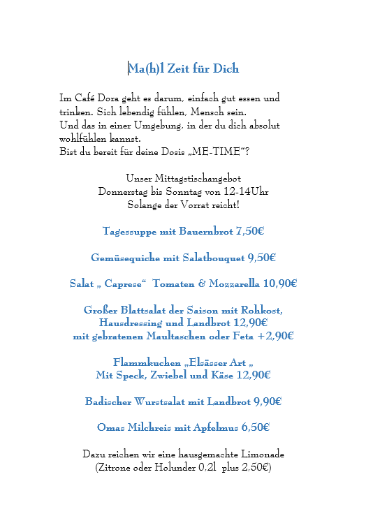 Gönnen Sie sich eine Auszeit in unserem neugestaltenten Café Dora in den Räumlichkeiten